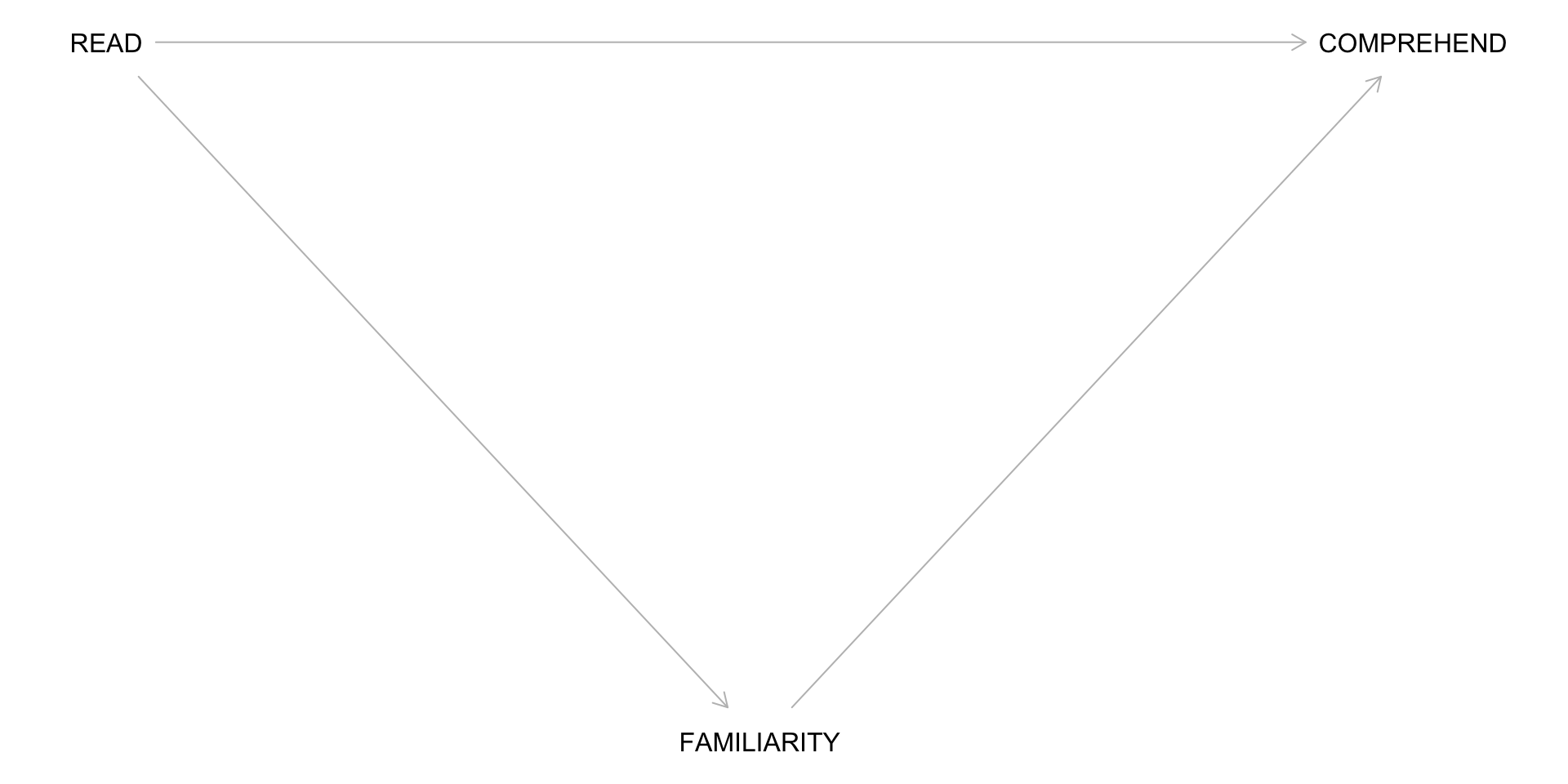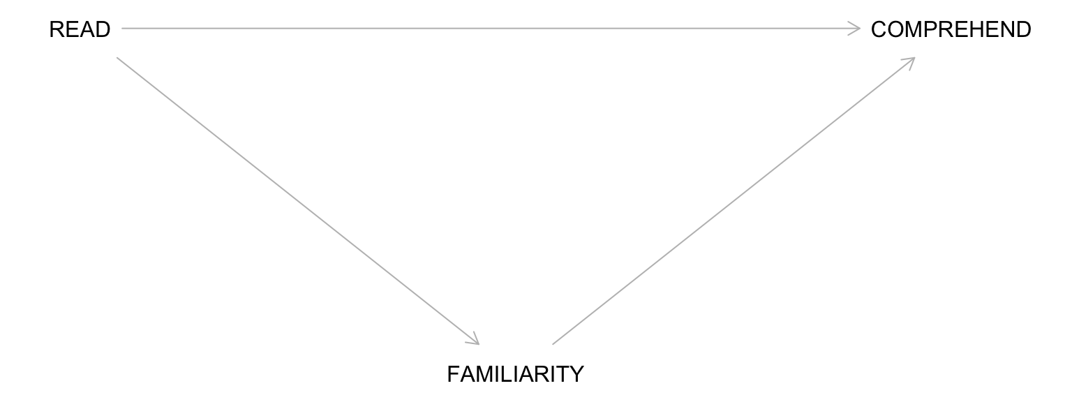 READ → FAMILIARITY → COMPREHEND (causal path – pipe)