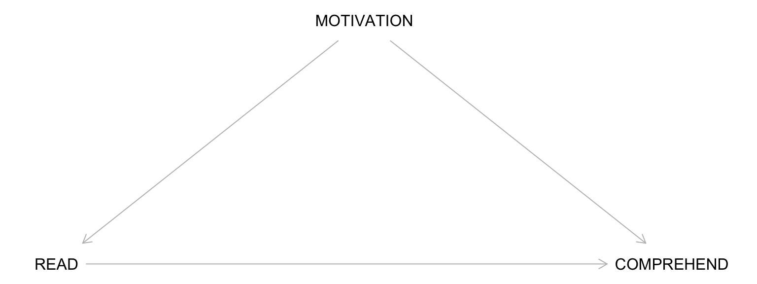 READ ← MOTIVATION → COMPREHEND (non-causal path / back-door path)