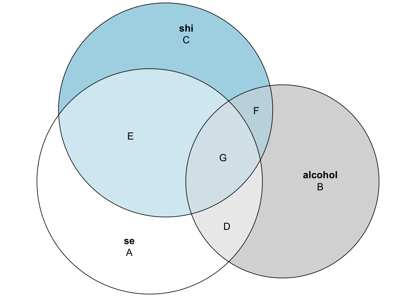 | R²(se ~ alcohol + shi) | (D + E + G) / (A + D + E + G) |